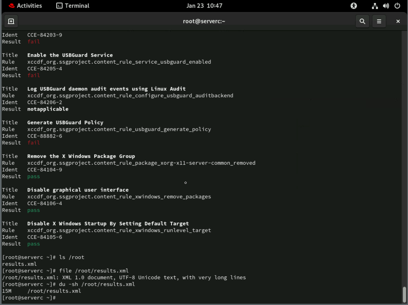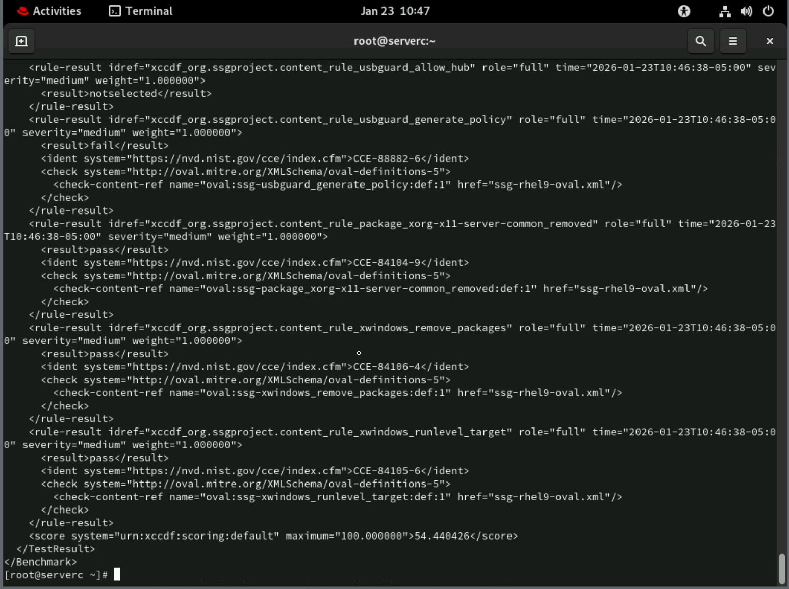 /usr/share/xml/scap/ssg/content/ssg-rhel9-ds.xml does not produce the results.xml file. I found out it is because of error 137, the process runs out of memory. It would be a great addition to this course of cases like this are included and solutions to fix this in case it happens.