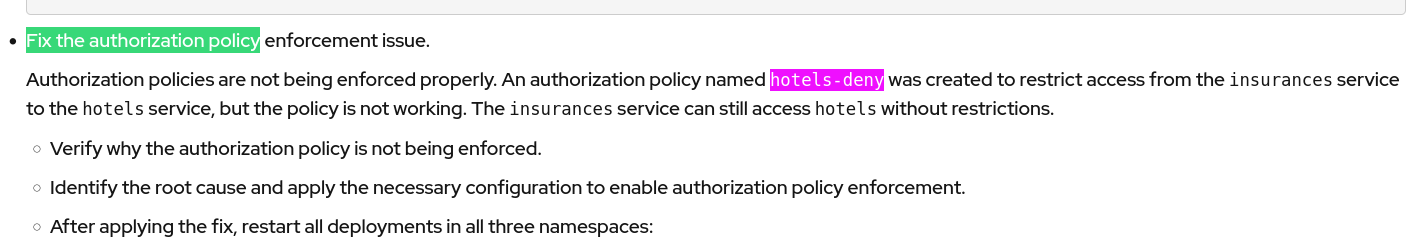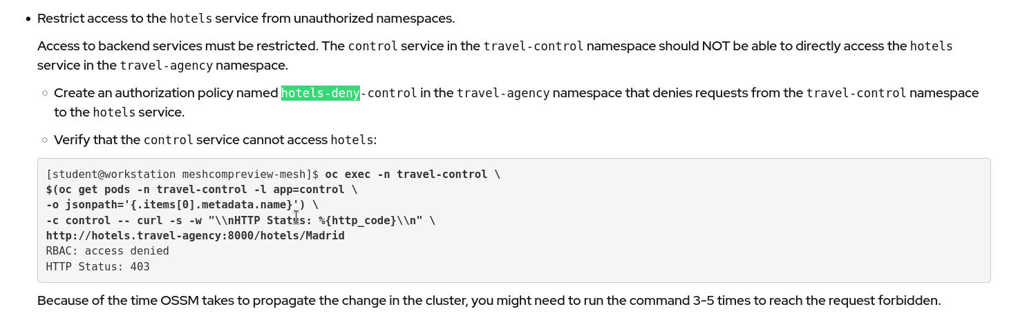 ad0010l-3.1 + The grading system expects an Authorization policy named hotels-deny-controls to exist, but the lab itself creates hotels-deny from lab start command to be fixed by the student