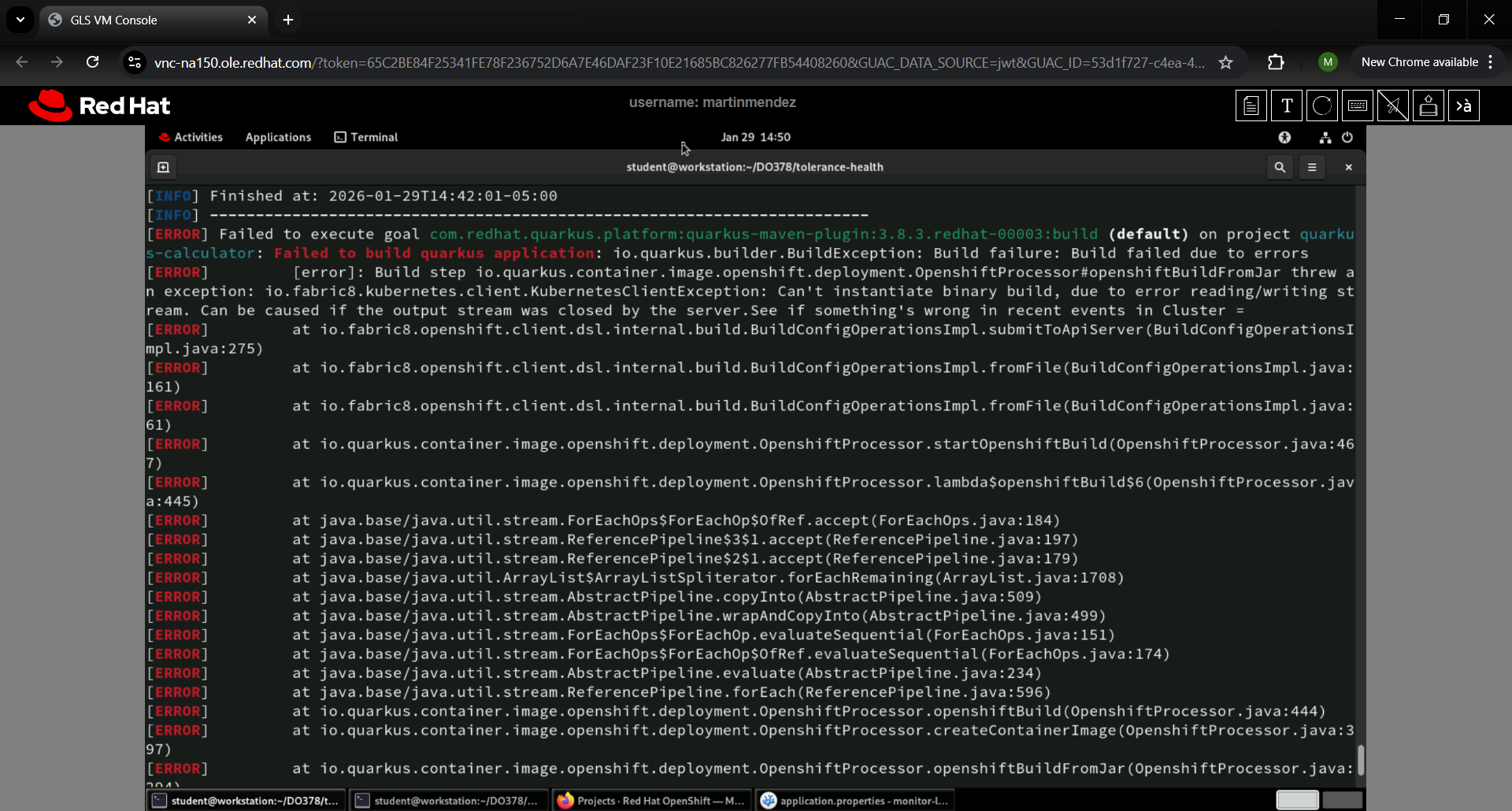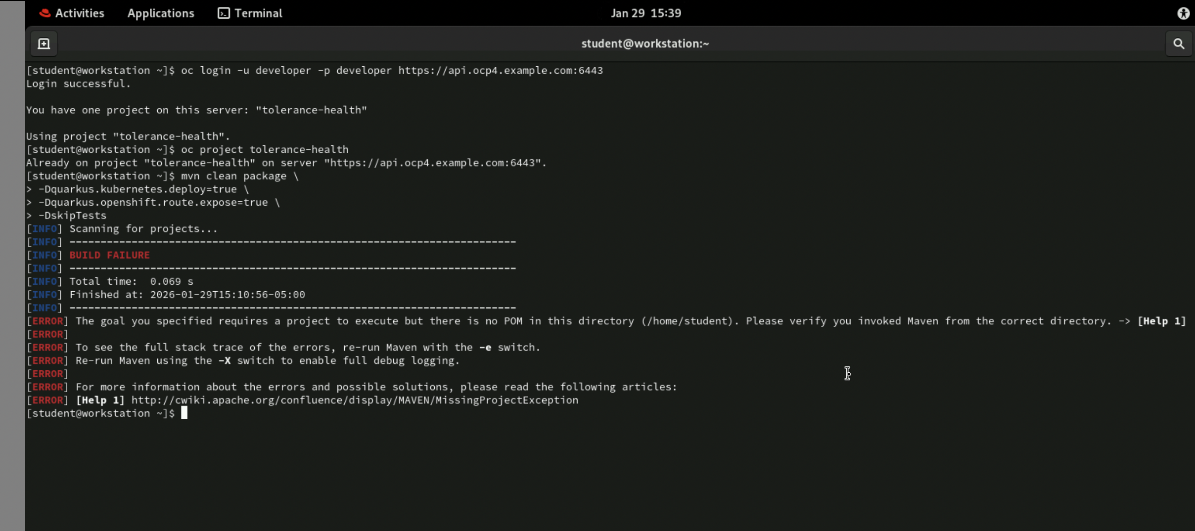at step6.4 Deploy the application to RHOCP by using the Maven command. Use the -DskipTests flag to skip the tests.