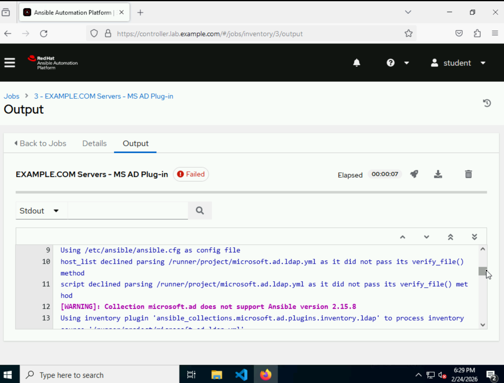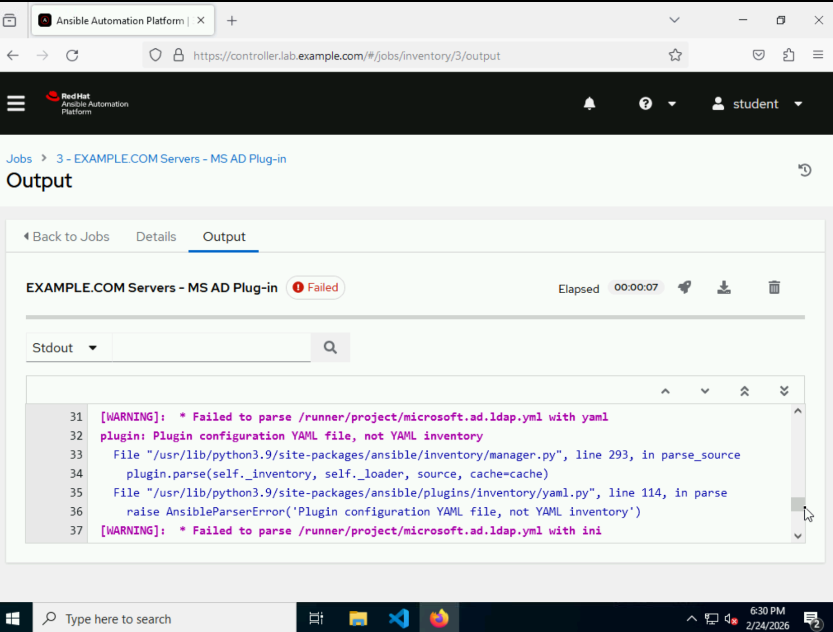 DO417-2.4 : step 6.8 failing with yaml parsing error : plugin configuration YAML file, not YAML inventory