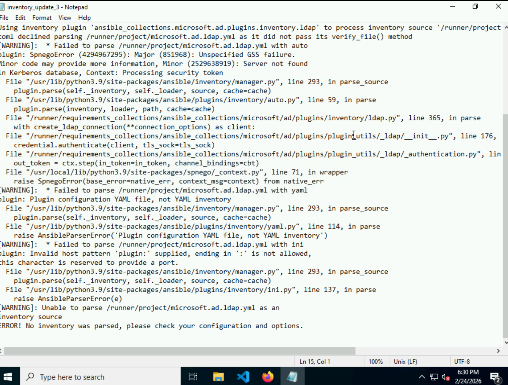 ch09s06 step 6.8 is failing with yaml parsing error : plugin configuration YAML file, not YAML inventory