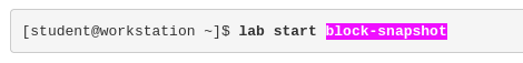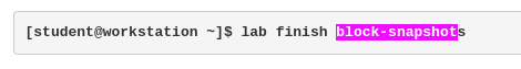 Workaround: [student@workstation ~]$ lab finish block-snapshot