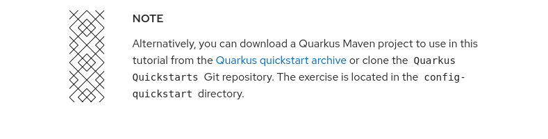 In the RHBQ product documentation for 2.2 and earlier versions, the content references and links to the community QuickStart GitHub repos, for example, the admonition in section 2 of Configuring your Quarkus applications: