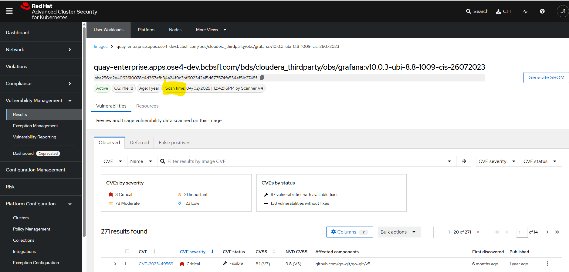 a. Including the scan time in the reporting will provide us with audit evidence showing that all images are being scanned within the mandated SLAs.
