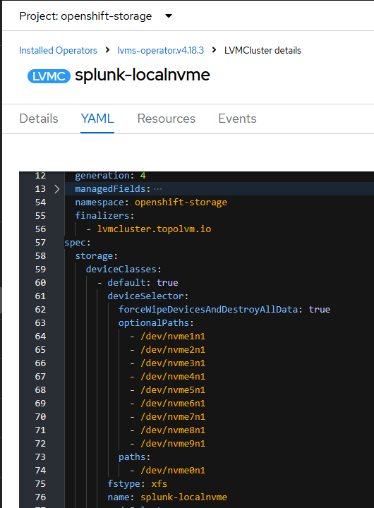 splunk-localnvme-ac51c8c5bb29439e840e-0bd73c3cfcd0: 15002959872 3750739968 linear 259:4 2048