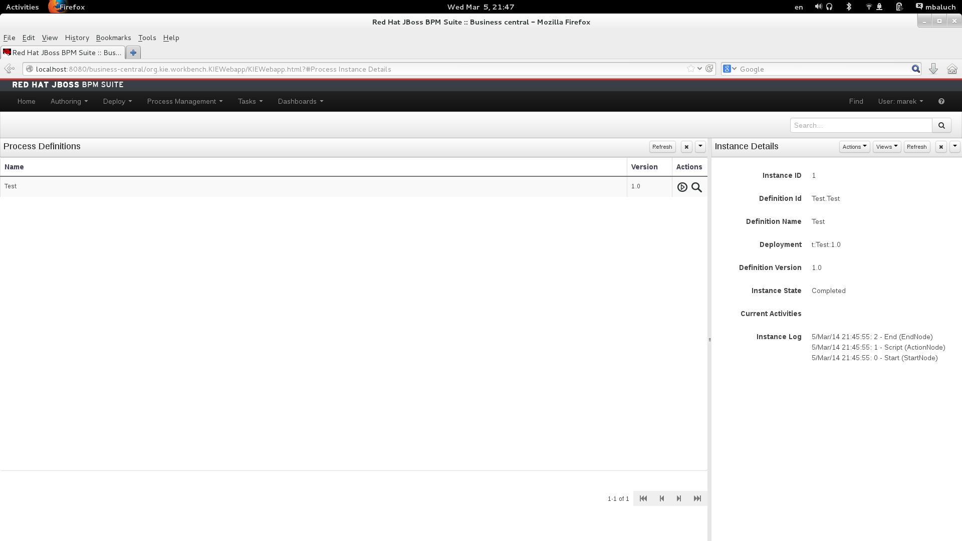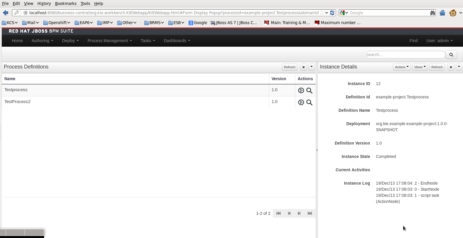 3. Go to "Process Management"-->"Process Definitions" and start process instance