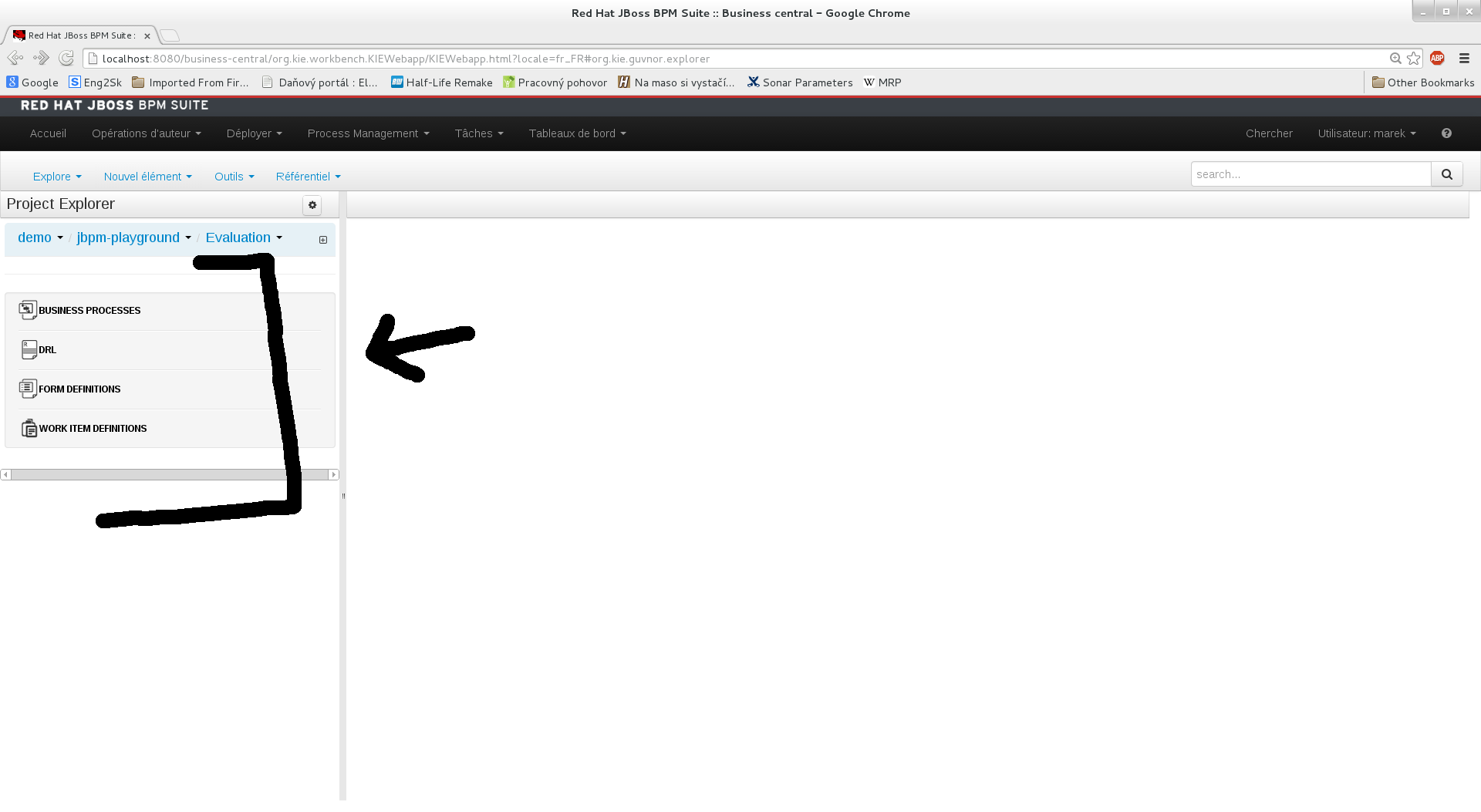 See attached screenshot. The menu which can be used to open a process/drl/form/etc. is not localized.