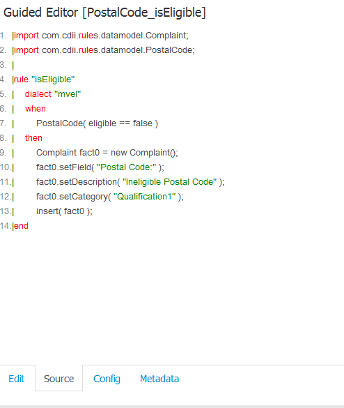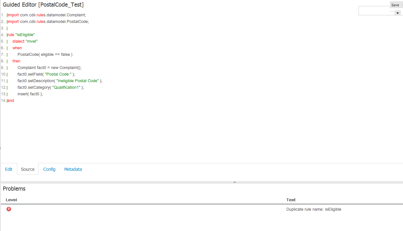 1. Create a simple rule called "Test1" using Guided Editor;