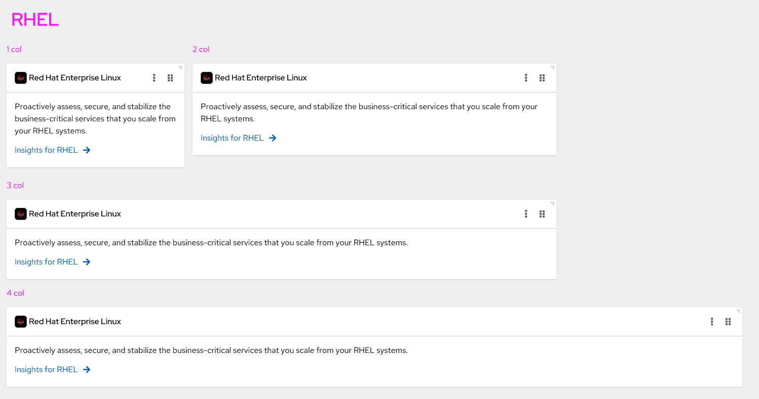 With the widgetized landing page effort we will have a "console-default" dashboard we will ship with out of the box. This dashboard will contain several widgets that must be responsive as the page/grid resizes but also as the user customizes their dashboard.