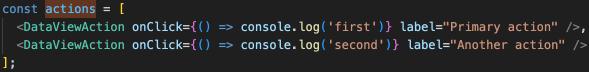 Actions configuration is passed using the actions property consuming an array of Action elements handling displaying the action buttons or menu depending on the viewport size - example: