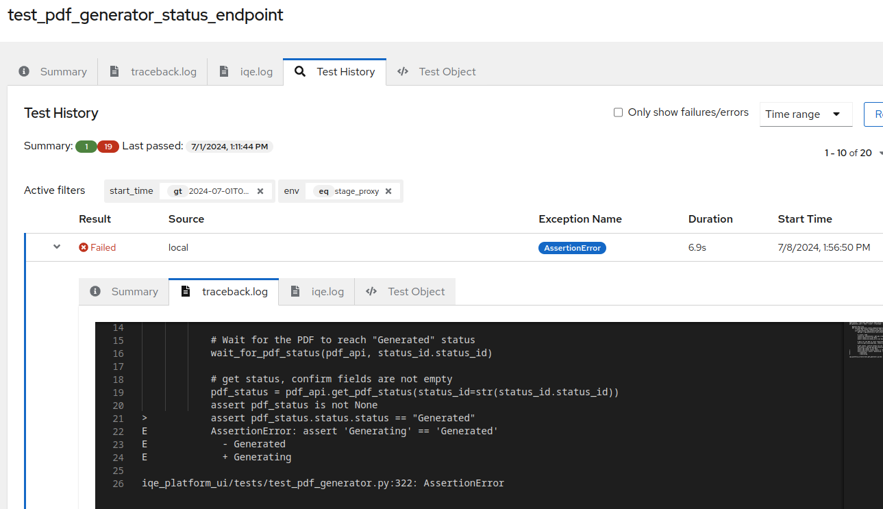 FAILED iqe_platform_ui/tests/test_pdf_generator.py::test_pdf_generator_status_endpoint - AssertionError: assert 'Generating' == 'Generated'