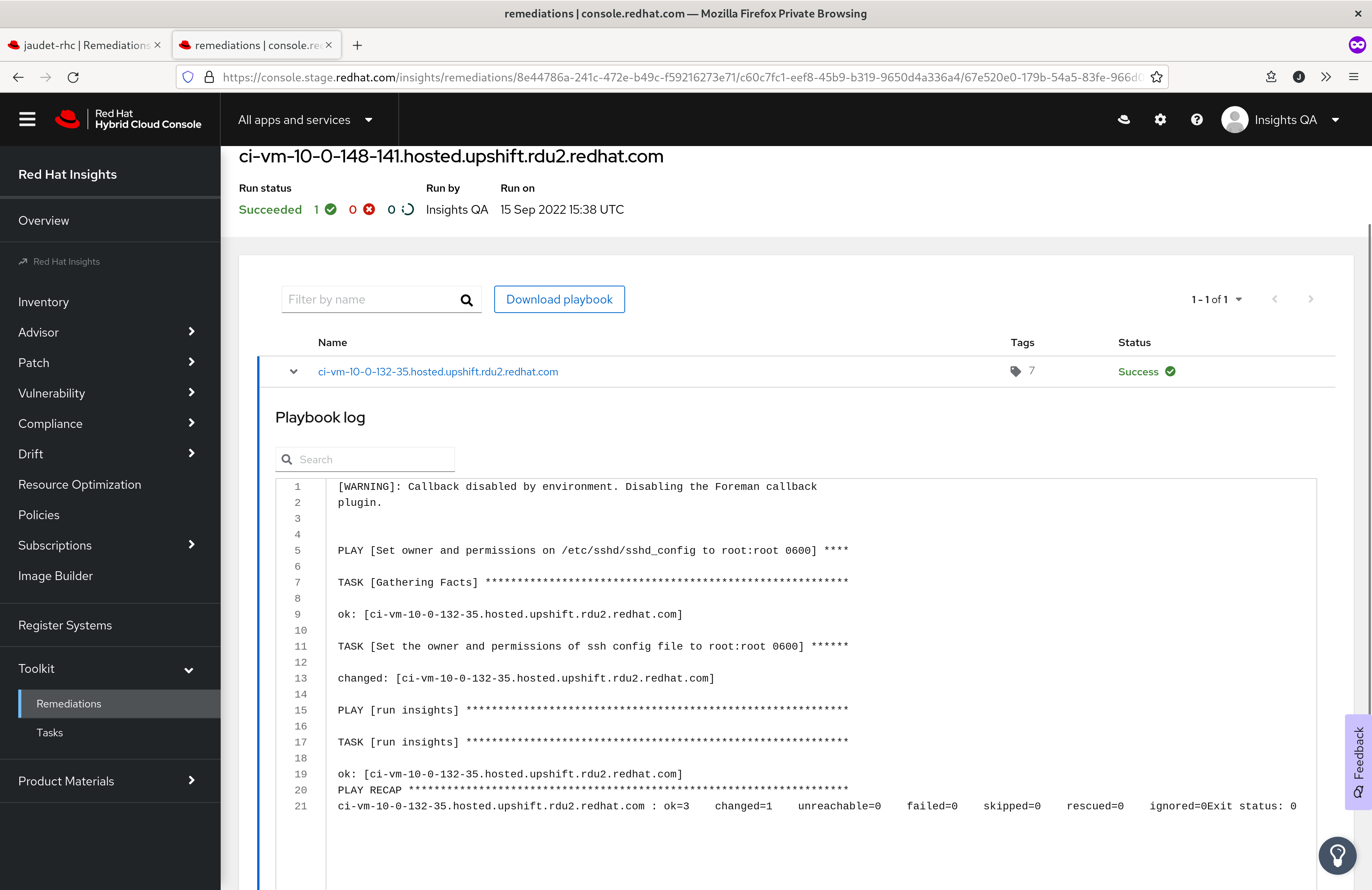 ci-vm-10-0-132-35.hosted.upshift.rdu2.redhat.com : ok=3    changed=1    unreachable=0    failed=0    skipped=0    rescued=0    ignored=0Exit status: 0