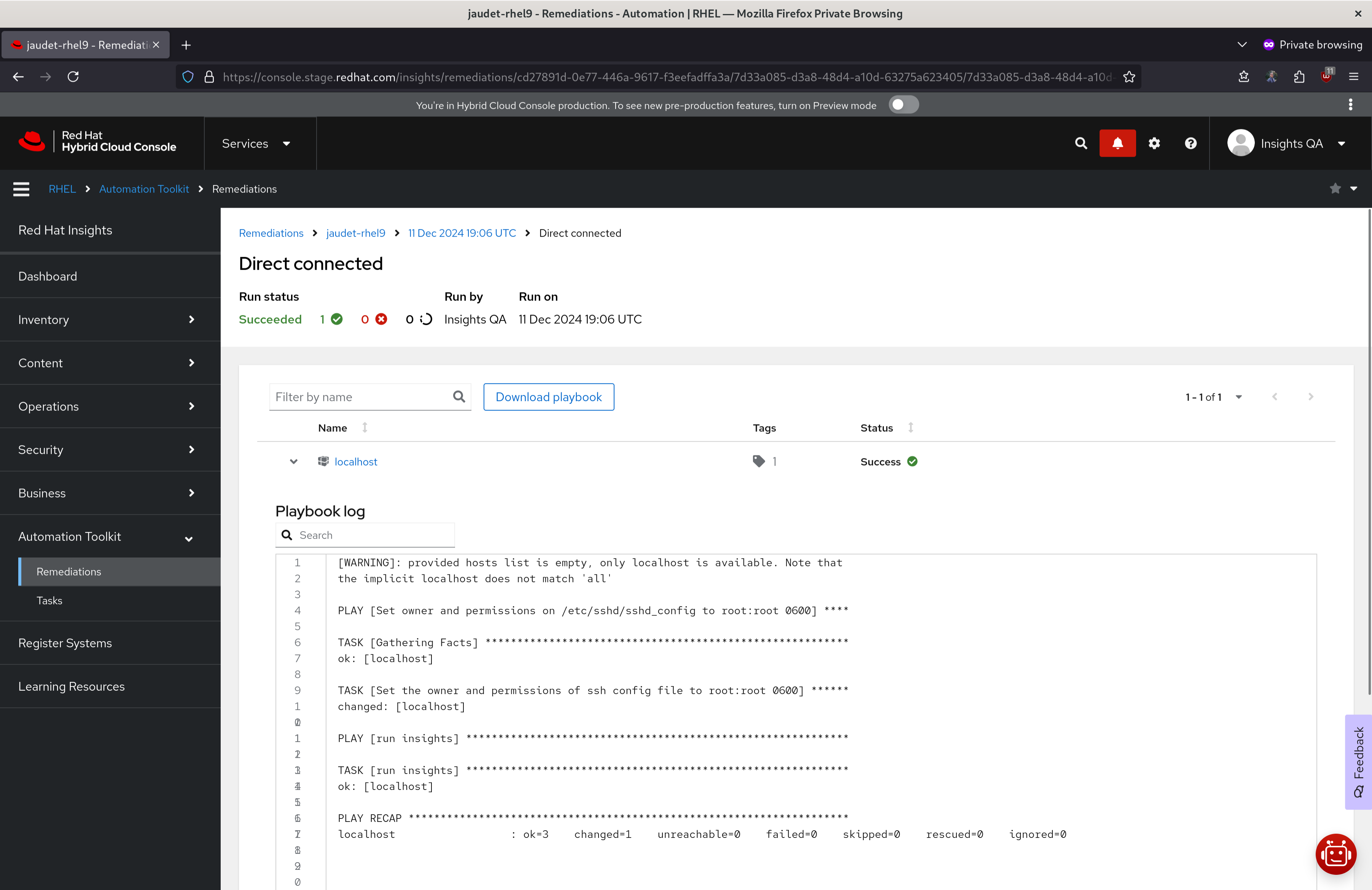 [root@jaudet-laptop-rhel86-vmlib ~]# ANSIBLE_COLLECTIONS_PATH=/usr/share/rhc-worker-playbook/ansible/collections/ansible_collections/ ansible-playbook playbook.yml -i localhost, --connection=local