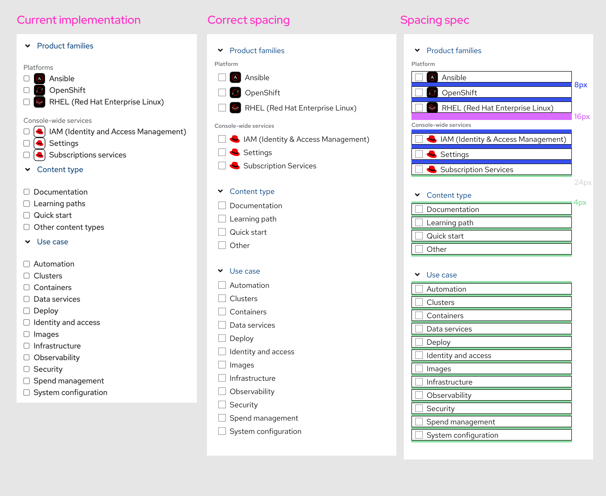 • 16px between ‘Platform’ and ‘Console-wide services’ subsections