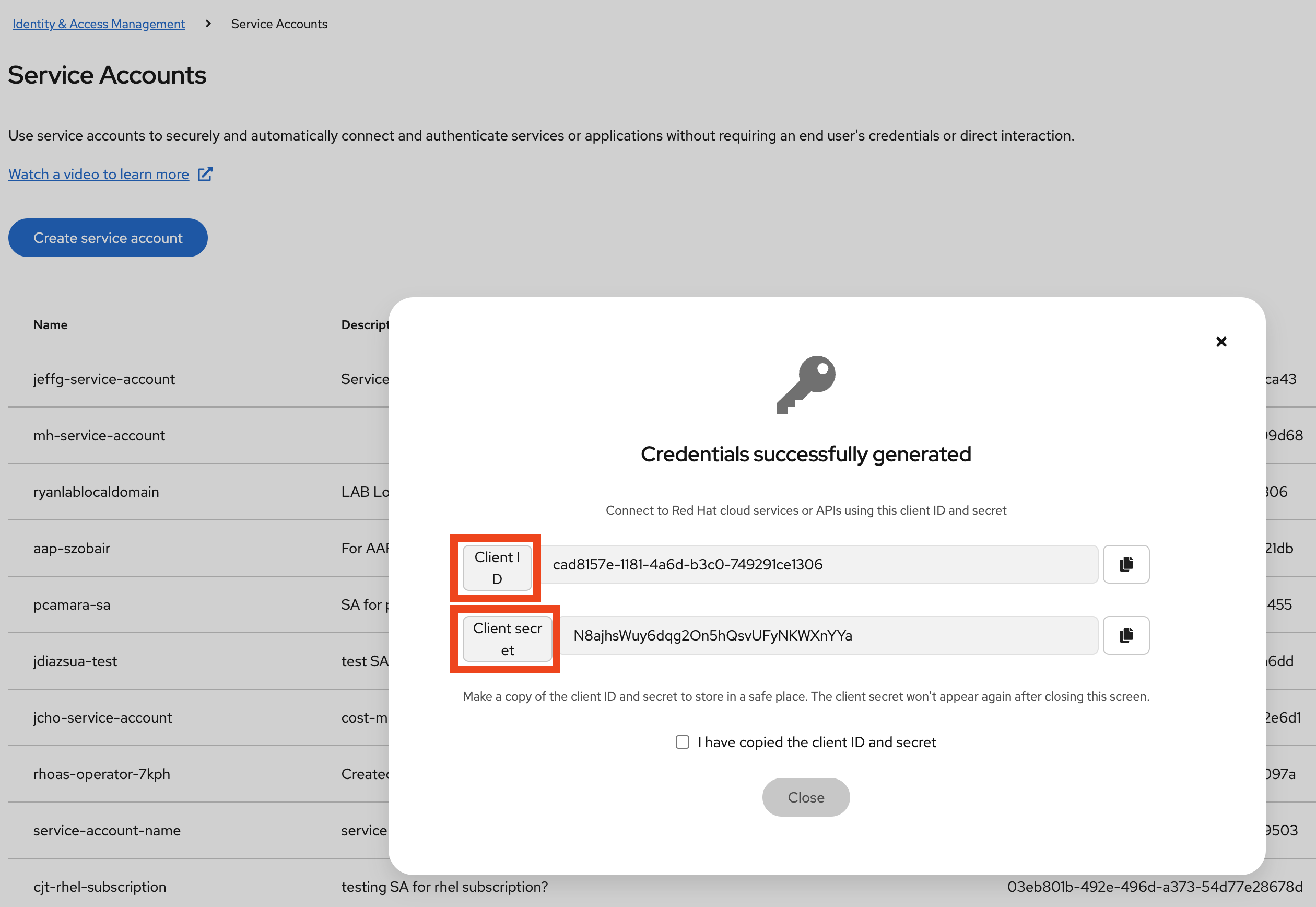 The label text in the credentials modal that appears after creating a service account gets poorly wrapped. Might be PF6 migration fallout?