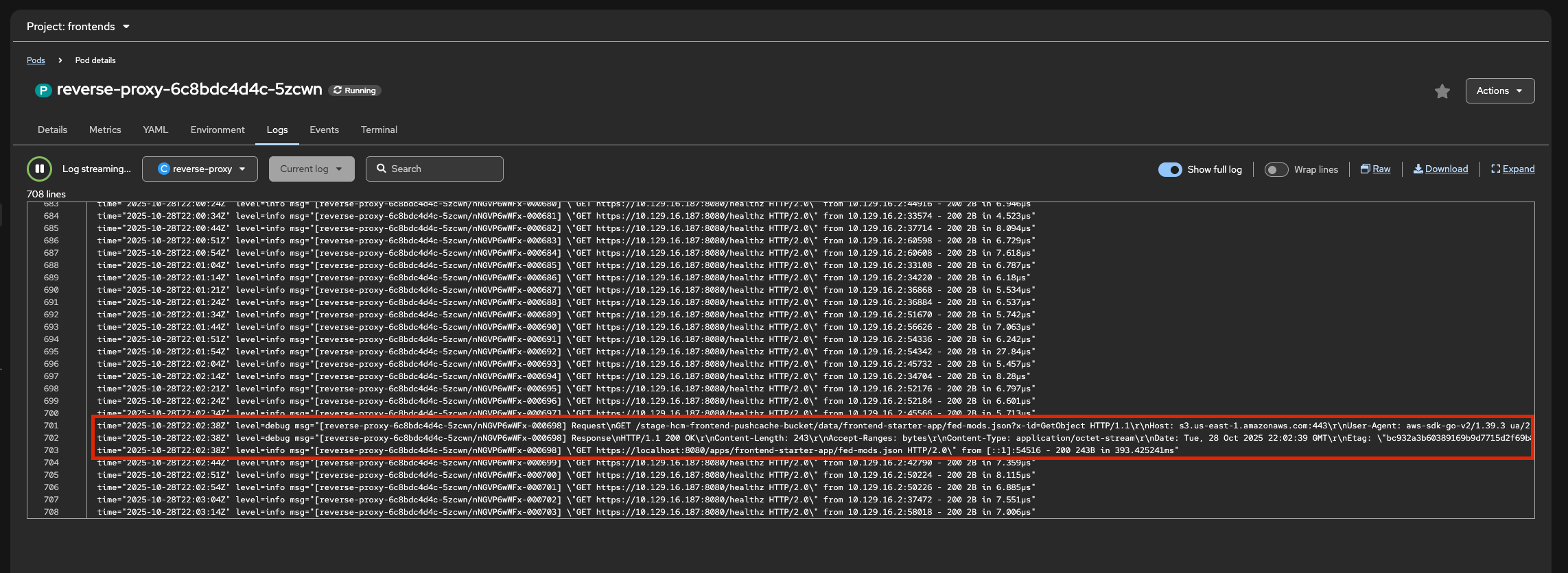 We need to update the reverse proxy to point at private S3 buckets to avoid incurring charges for unauthorized downloads. This will require updating the reverse proxy to run the AWS signing algorithm on the proxied requests and passing the key/token in from the frontend operator.