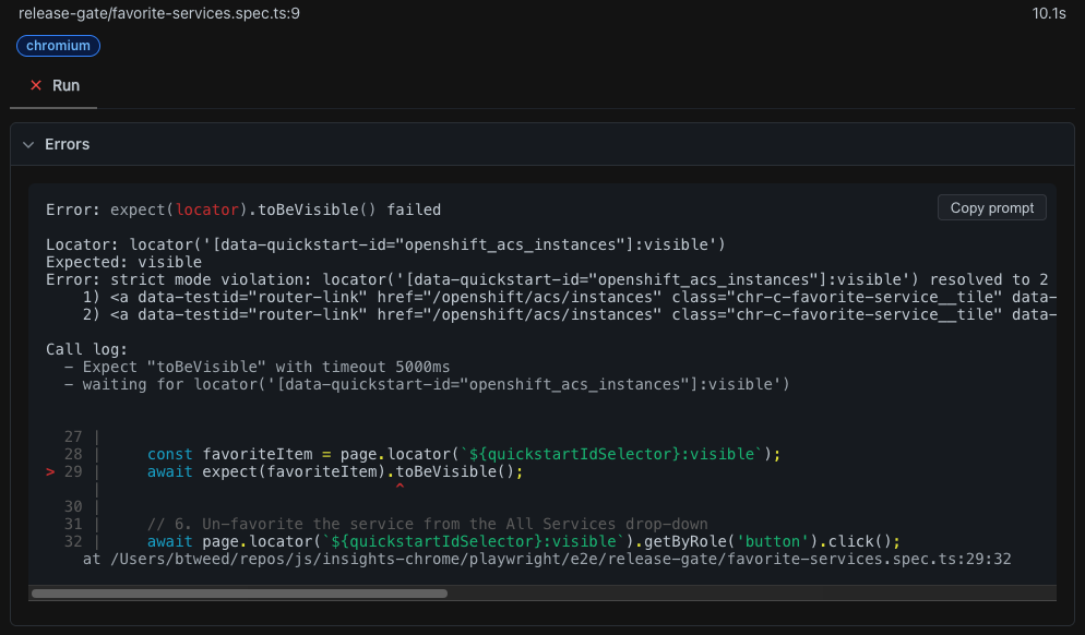 Error: strict mode violation: locator('[data-quickstart-id="openshift_acs_instances"]:visible') resolved to 2 elements: