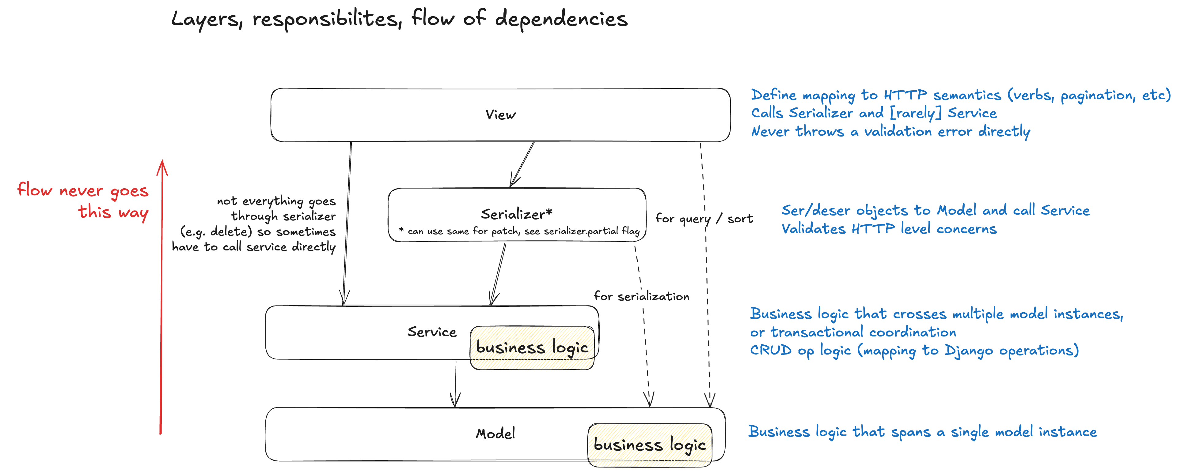 - Should follow hexagonal architecture principles. The attached diagram is a good reference of how to organize concerns between layers. Please use the CreateRole PR as a reference.
