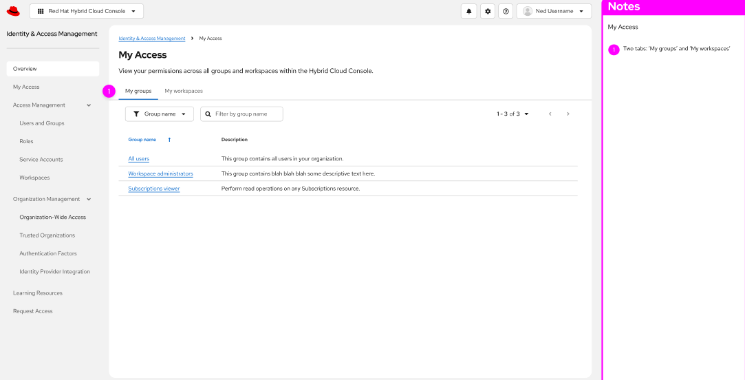 - Add page description "View your permissions across all groups and workspaces within the Hybrid Cloud Console"