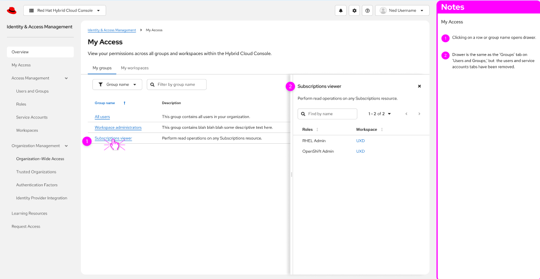 My Access | My Groups Sidepanel