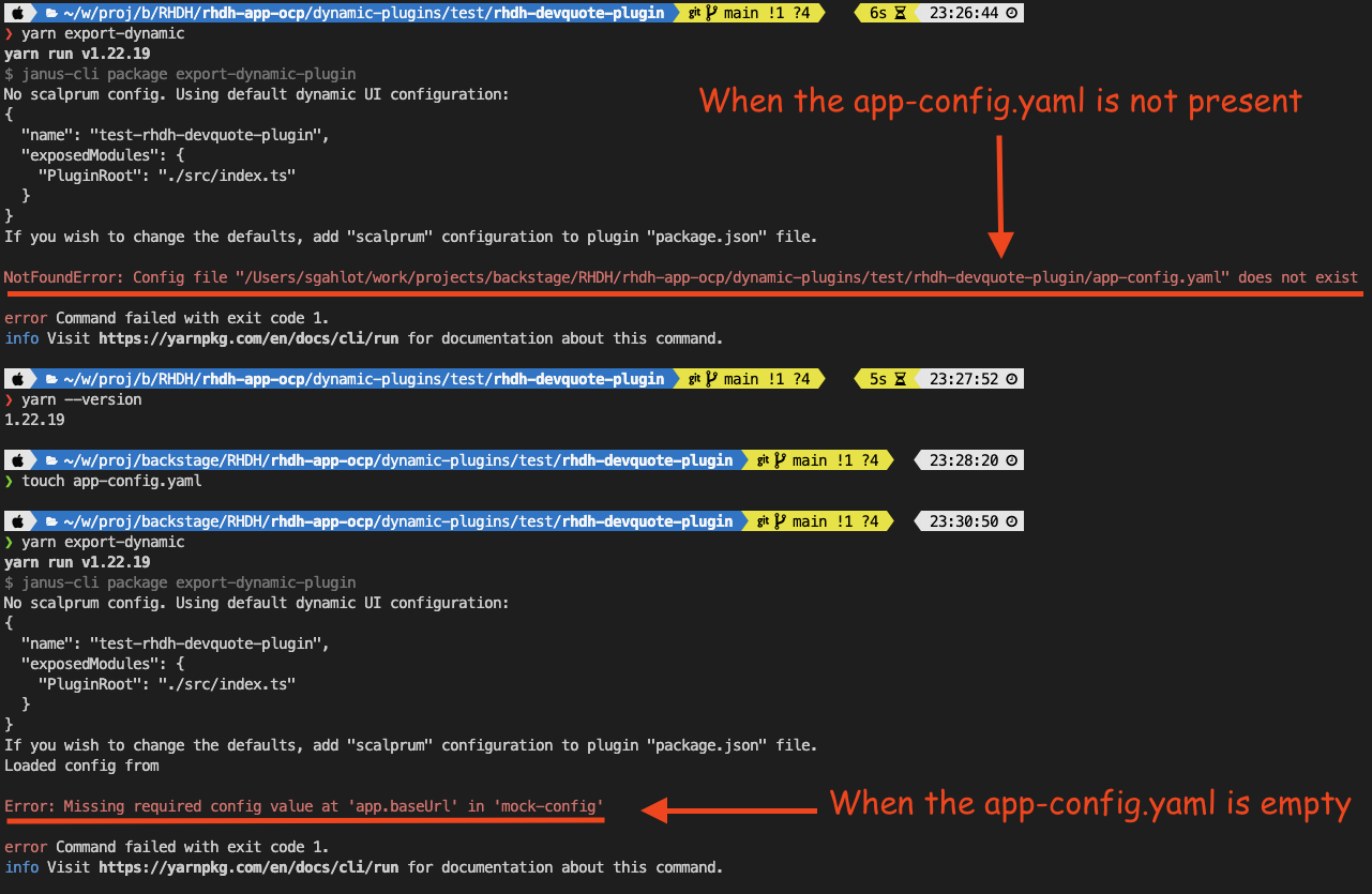 The yarn export-dynamic command should succeed and should not need app-config.yaml file to be present