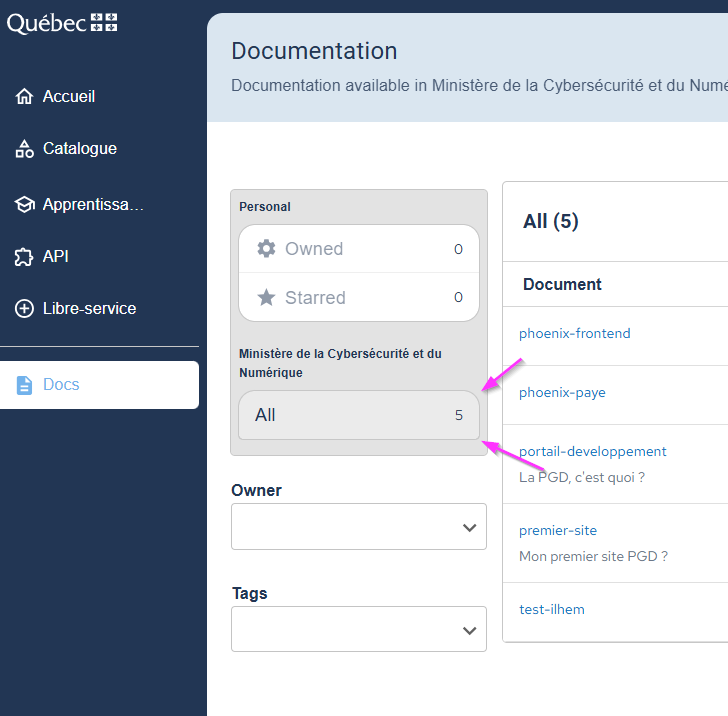 1. Go to Catalog page or Docs page