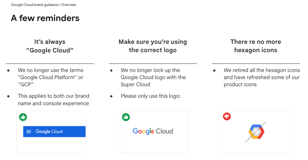 - All mentions of “Google Cloud Platform” and “GCP” are updated to “Google Cloud”.
