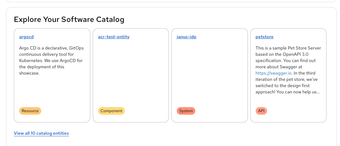If you close the Explore your catalog dismissable card, you see more entity cards displayed. In my case, the two additional ones that were pulled in don't have description metadata available for the UI to display. Should they?