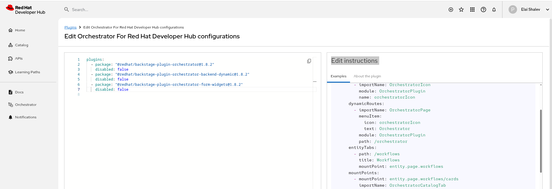 Orchestrator plugins' "Edit instructions" page features outdated plugin configuration.