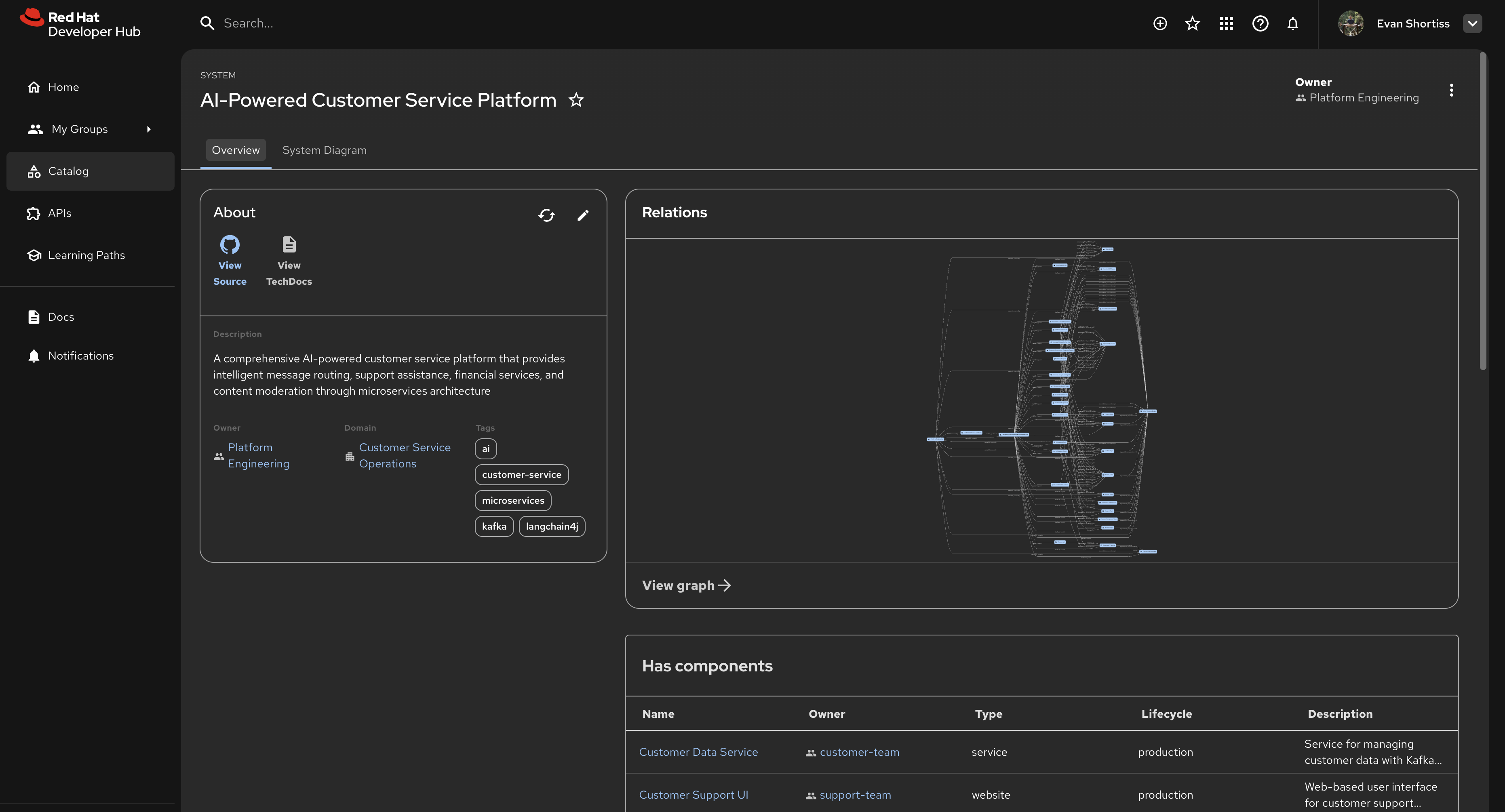 - Import some entities with relationship, e.g https://github.com/rhdh-demo-gh/ob-demo/