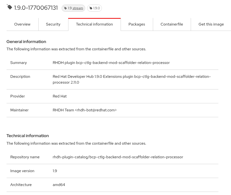 There is no Description text in RHEC listings for OCI artifacts (npm packages / Backstage plugins)