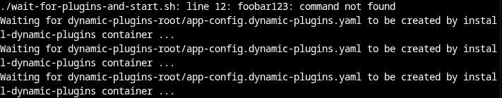 [rhdh]                    | Waiting for dynamic-plugins-root/app-config.dynamic-plugins.yaml to be created by install-dynamic-plugins container ...
