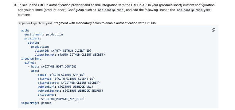Currently, GitHub Authentication presents auth and integration in the same configuration example, which creates confusion and impedes findability for the user.