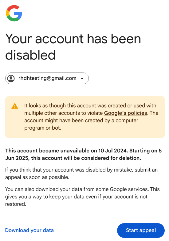 Nightly job failing because Google account has been disabled