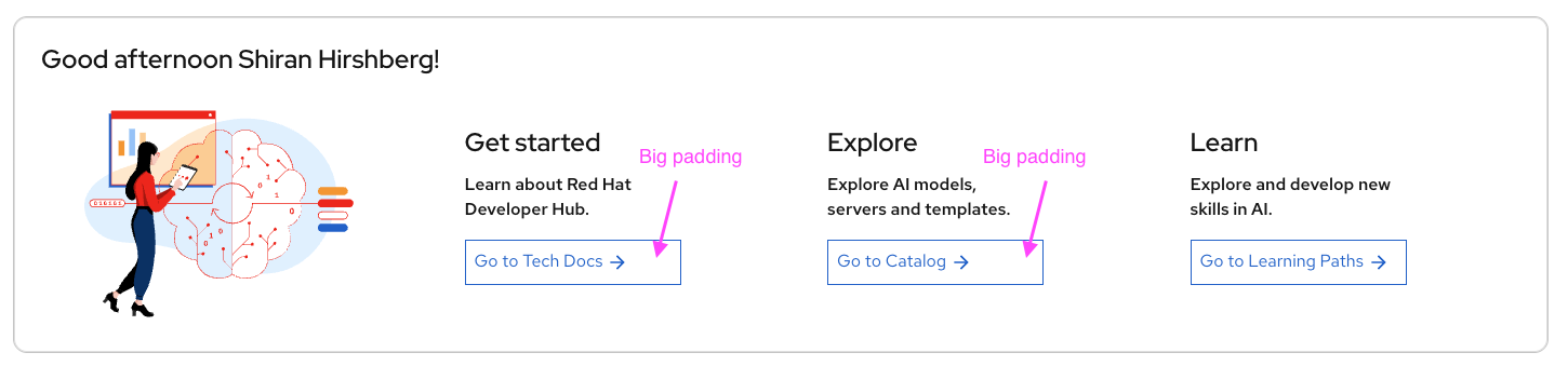 • There is quite big padding below the arrow buttons in the Welcome card (see screenshot attached)