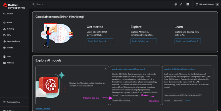 • The "Explore AI Models" text sometimes appears too close to the tags, can we adjust the spacing? (see screenshot attached)