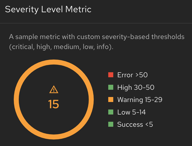 Platform engineers and developers can define custom severity levels (e.g., 'critical', 'info') with appropriate visual indicators and names, providing support for more nuanced metrics.