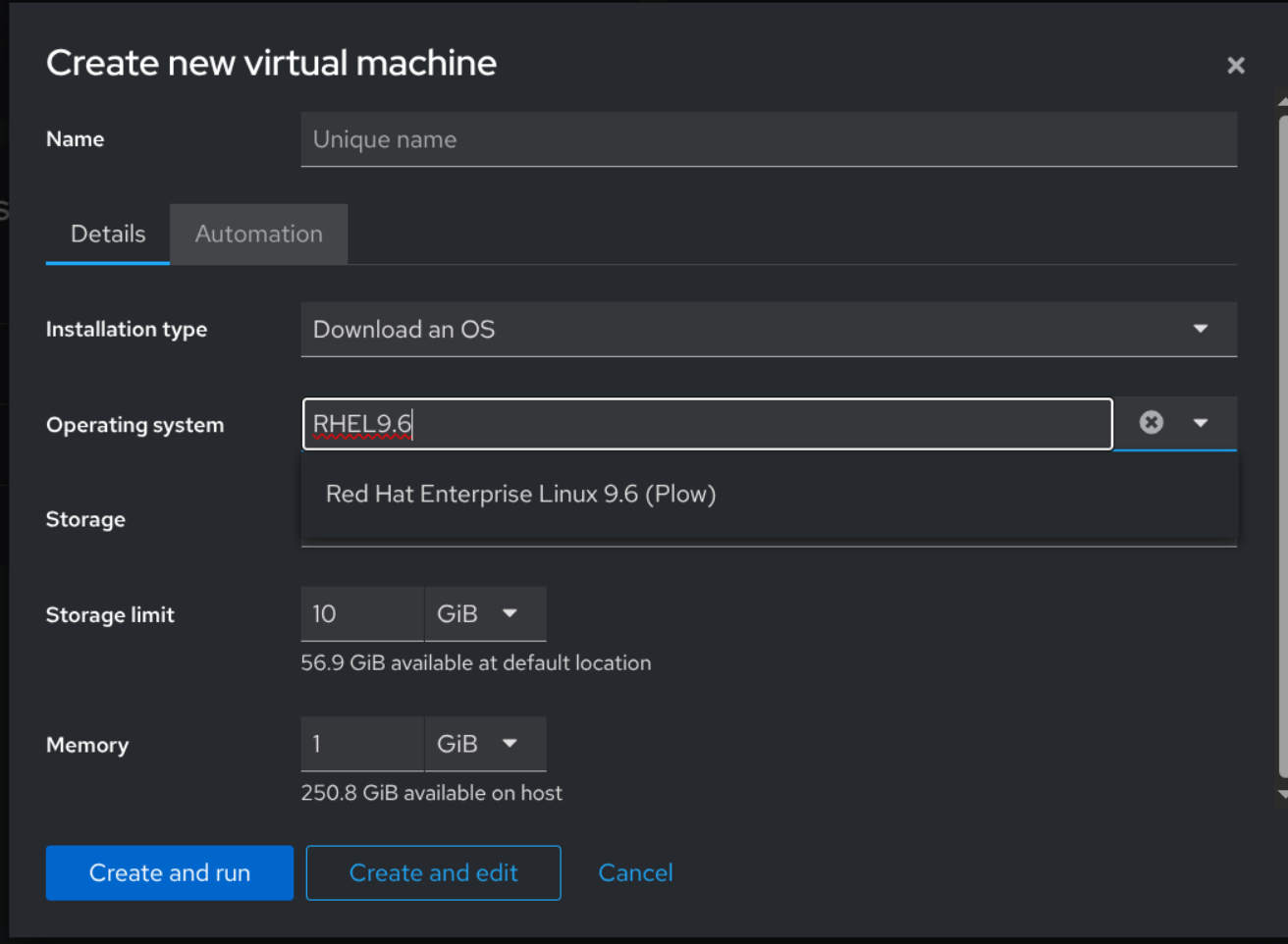 Requesting to add the RHEL 9.5 and 9.6 under Operating system section.