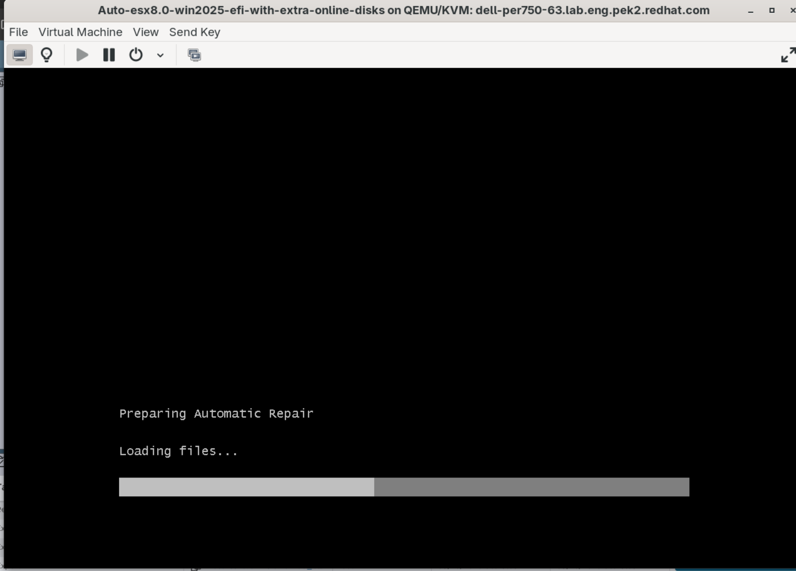 A Windows 2025 virtual machine was successfully migrated from a VMware environment to a local libvirt RHEL host. Upon first boot in the new environment, the VM fails to load the operating system and becomes stuck in the "Preparing Automatic Repair" loop.