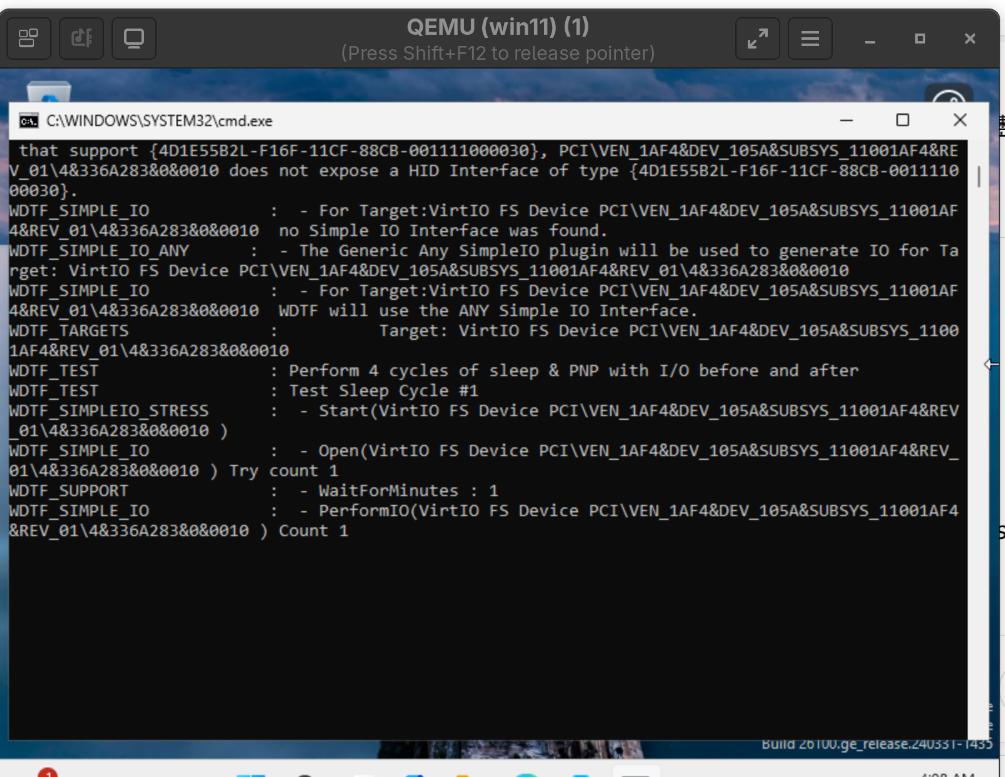 QE found that "DF - Sleep and PNP (disable and enable) with IO Before and After (Reliability)" and "DF - Sleep with IO During (Reliability)" both failed. These two test cases seem to have the same problem: the test log lists 100% but the count of sub-cases is only 2 or 3. Besides, the Logs head is drawn as ": (" and found the Memory dump file on the guest.