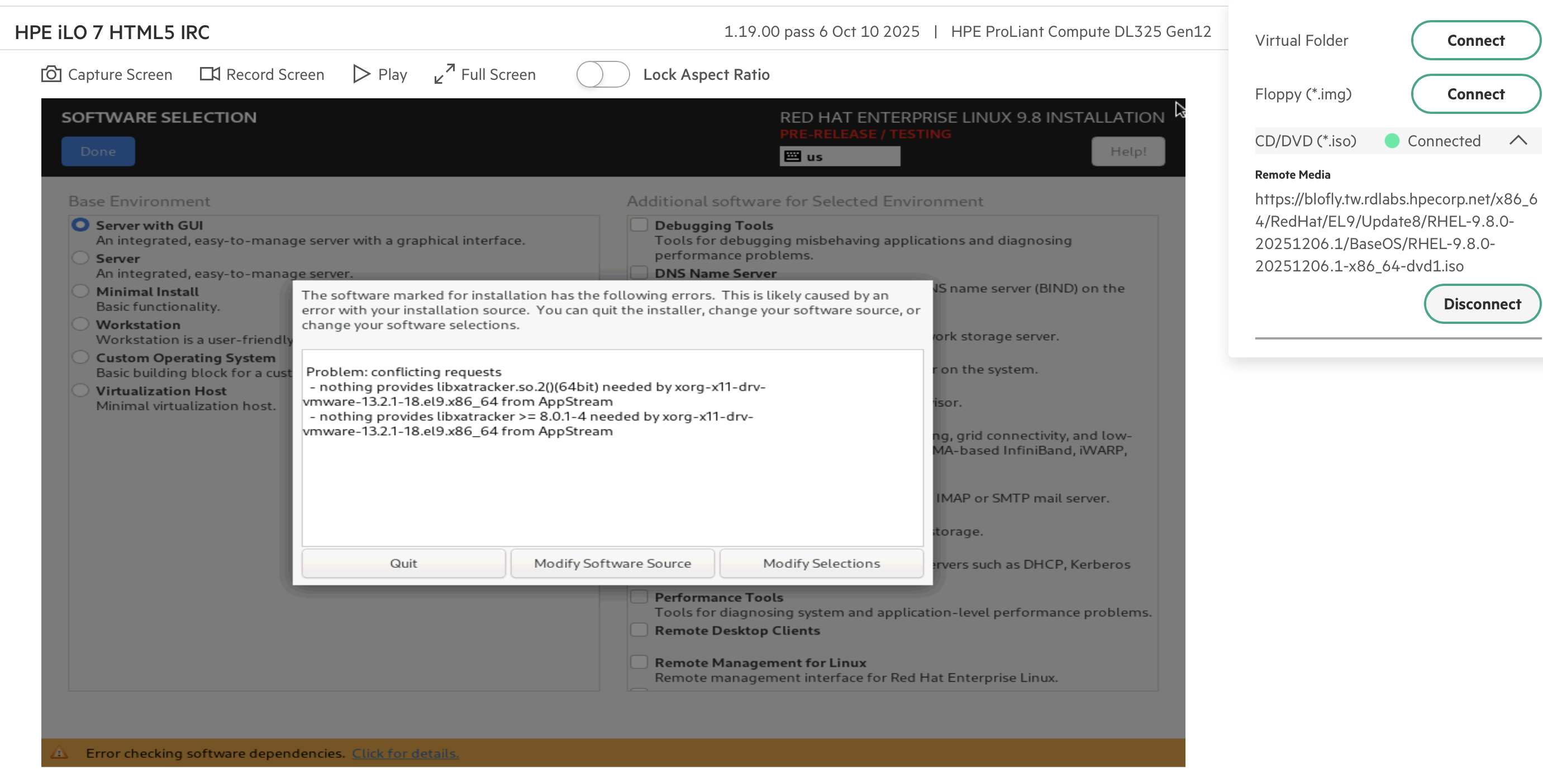 1. For "Software Selection" setting, choose "Server with GUI" in the Base Environment option and chose all items in Additional Software for Selected Environment option