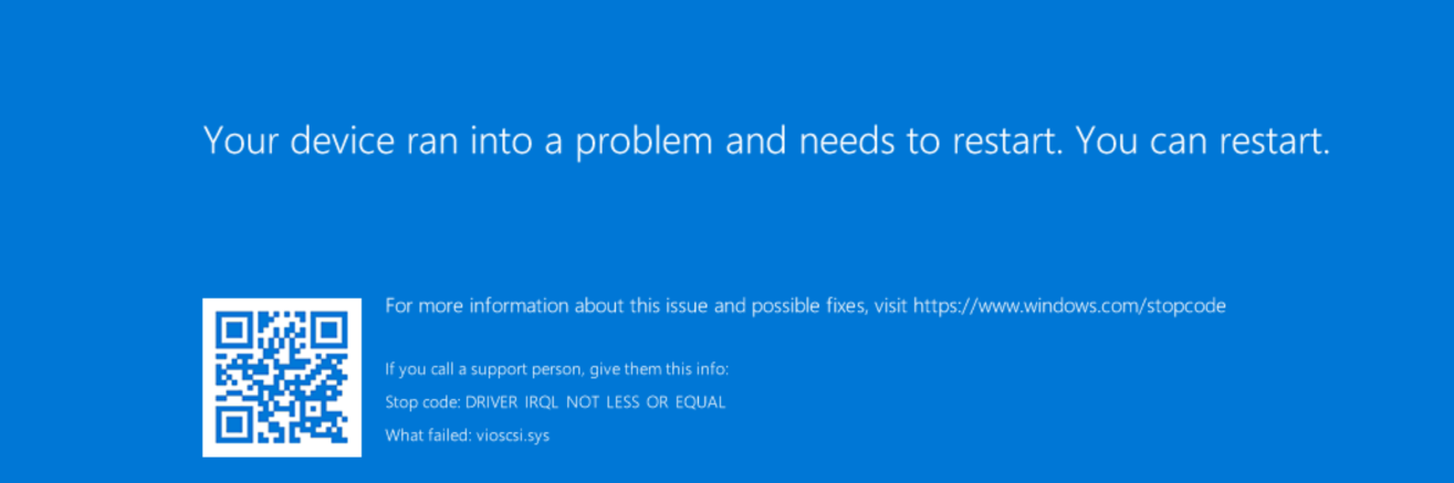 Win2025 BSOD,stop code:DRIVER IRQL NOT LESS OR EQUAL(0XD1) What failed: vioscsi.sys