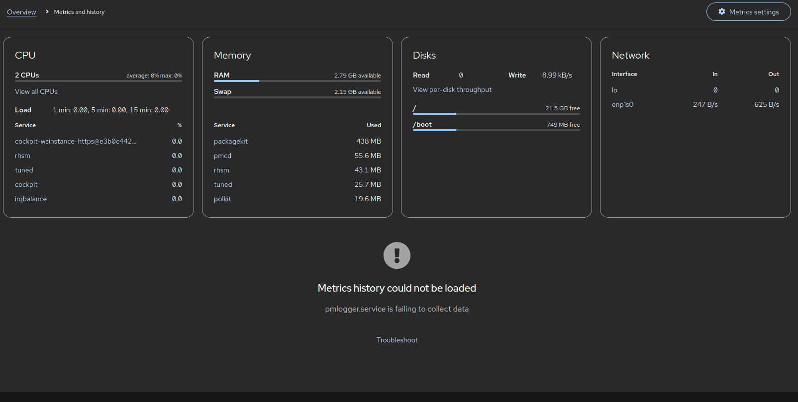 Metrics history could not be loaded pmlogger.service is failing to collect data