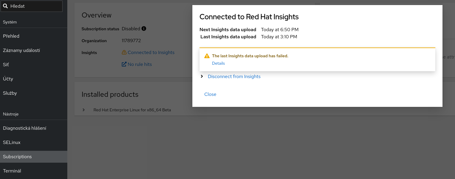 - Wait for a failed upload of insights-client, maybe forcing one somehow (e.g. adding broken hosts in /etc/hosts)