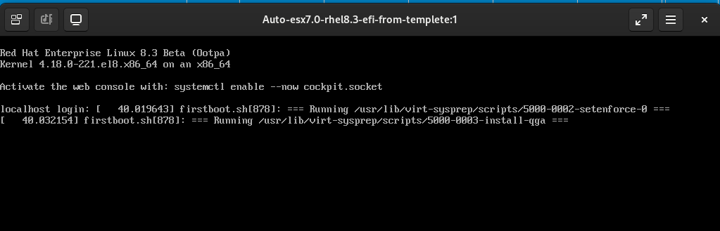 2. Convert a rhel8.3-efi guest from VMware to local libvirt, but the guest can't boot into OS after v2v conversion, pls refer to screenshot 'rhel8.3-efi-guest-after-v2v-rhel9.6,png'