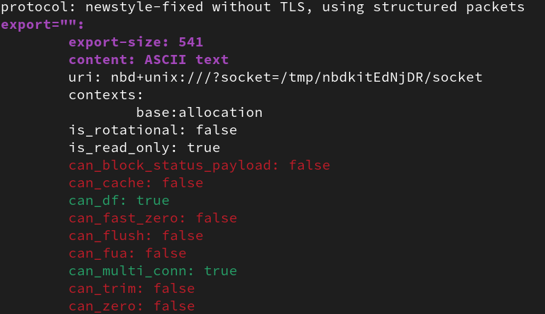 1. Check debug information of nbdkit command when the background of the terminal box is black, found bond messages is difficult to read, please refer to the screenshot 'bold-debug-info-of-nbdkit.png'