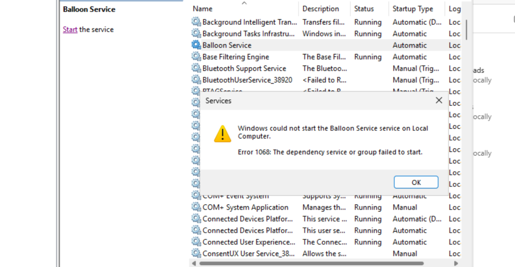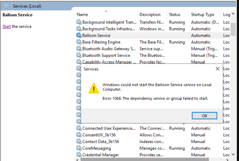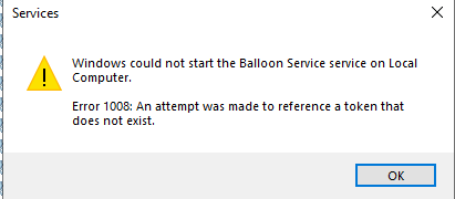 when Winmgmt is stopped and disabled, restart or start BalloonService it fails with "Exit Code: 1008"