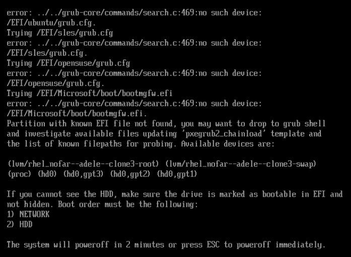 Provisioning RHEL 10 host with Secure boot enabled fails on VMware/Libvirt using Satellite, and it fails in "Loading GRUB2 config from ESP" after PXE provisioning is completed