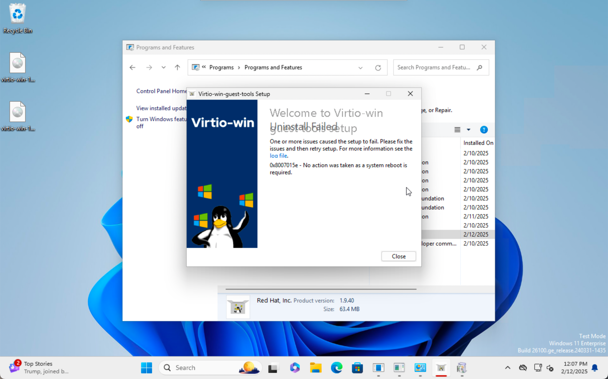 5. Try to uninstall the Virtio-win-guest-tools v1.9.44 from the "Programs and Features" panel.
