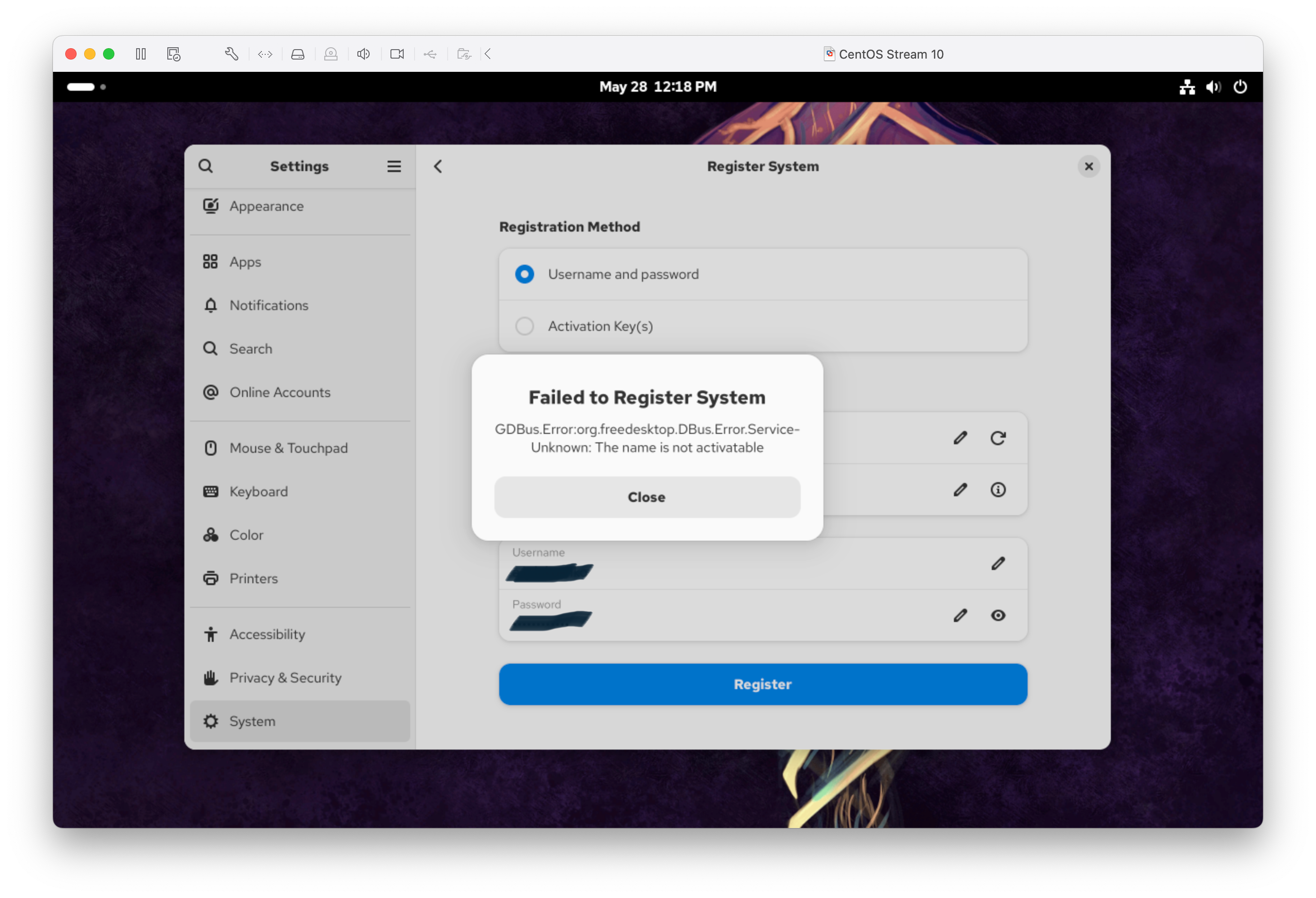 GNOME Settings shows System -> Registration module that proposes to register system to Red Hat but it doesn't work anyway.